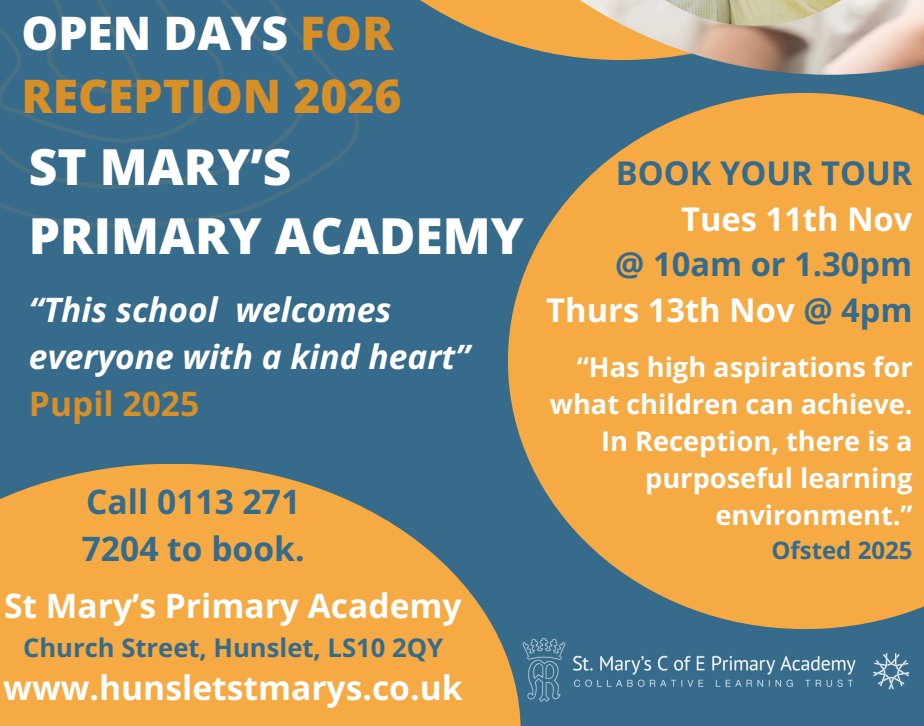 If you are interested in sending your child to St Mary's and would like to find out more information, please come and meet us at one of our Open Days: